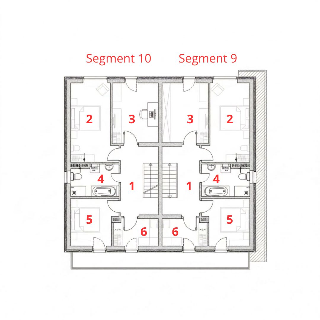 Prezentowany lokal (10) to Segment który oferuje największą prywatność oraz dodatkową przestrzeń ogrodową z trzech stron budynku.